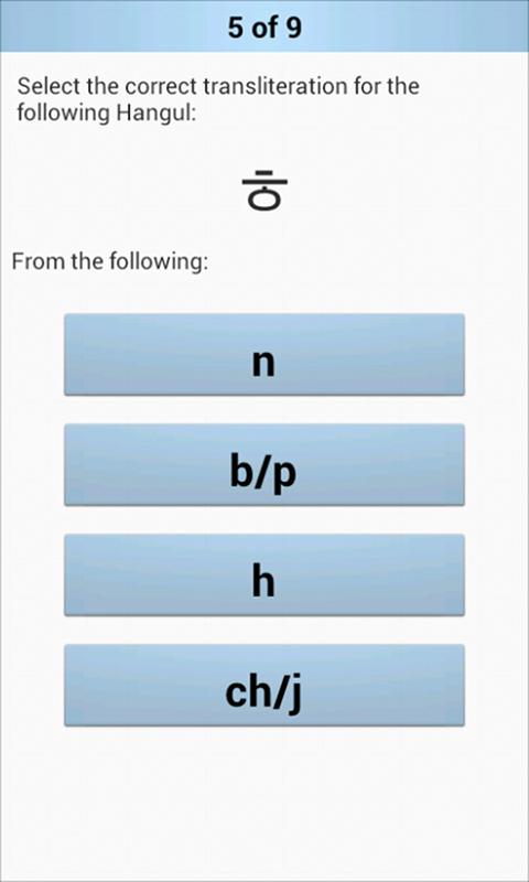 Hangul teaches you the history and structure of the Hangul, then lets you learn the Hangul at your own pace using easy-to-navigate lessons, quizzes, and flashcards.