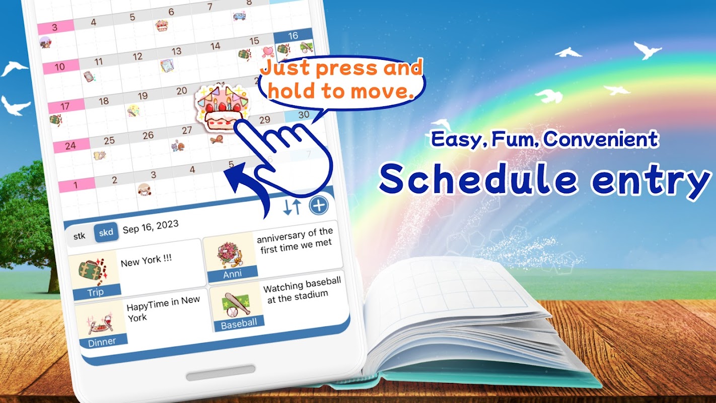 - เพียงลากและวางสติกเกอร์ลงบนปฏิทินด้วยนิ้วของคุณเพื่อสร้างการนัดหมาย