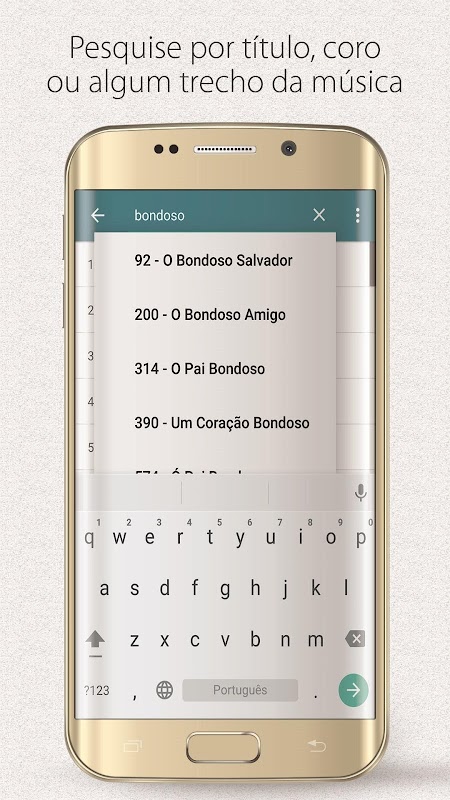 Pesquisa inteligente: você não precisa saber o número, o nome ou o refrão do hino; basta digitar qualquer trecho e a pesquisa será feita.