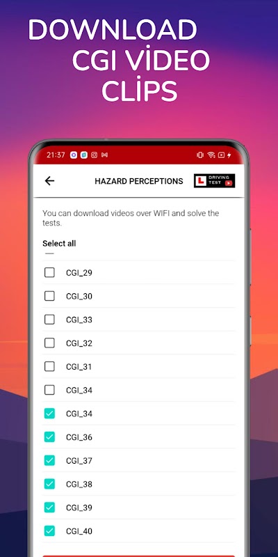คลิปที่คุณจะเห็นในศูนย์ทดสอบจะเป็นรูปแบบ CGI ใหม่ โดย DVSA ได้ยืนยันว่าทั้งวิดีโอในชีวิตจริงและคลิปการแก้ไข CGI ต่างก็เป็นเครื่องมือในการแก้ไขที่สำคัญ แอพนี้มีทั้งวิดีโอ CGI และวิดีโอจริงคุณภาพสูงผสมกัน ดังนั้นคุณจึงมีทุกสิ่งที่จำเป็นสำหรับการเตรียมตัวสำหรับการทดสอบทฤษฎีของคุณ!