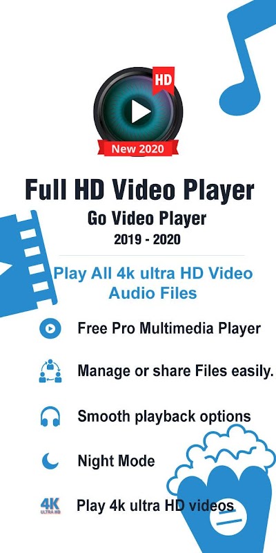 Full HD Video Player เป็นเครื่องเล่นเสียงและวิดีโอที่รองรับรูปแบบสื่อทั้งหมดในสตรีมความละเอียดสูง HD Video Player สำหรับ Android อัดแน่นไปด้วยคุณสมบัติอันทรงพลังสำหรับการเล่น HD Playback ช่วยให้ผู้ใช้เพลิดเพลินกับสตรีมวิดีโอ HD ที่ดีที่สุดพร้อมประสบการณ์การรับชมที่ดีที่สุด เครื่องเล่นวิดีโอ HD นี้เป็นมิตรกับผู้ใช้ น่าสนใจ รองรับเร็วขึ้น & ให้การเล่น 4K ที่ราบรื่น