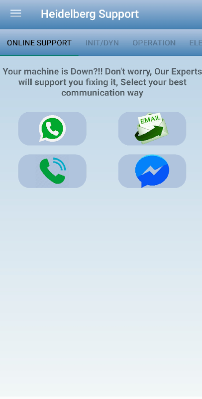 the application enables you to connect directly and real time with experts and engineers and technicians having over 15 years of experience in Heidelberg machines.