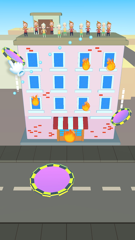Fire is everywhere and only people can jump to save themselves, you help them to save their lives