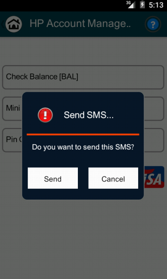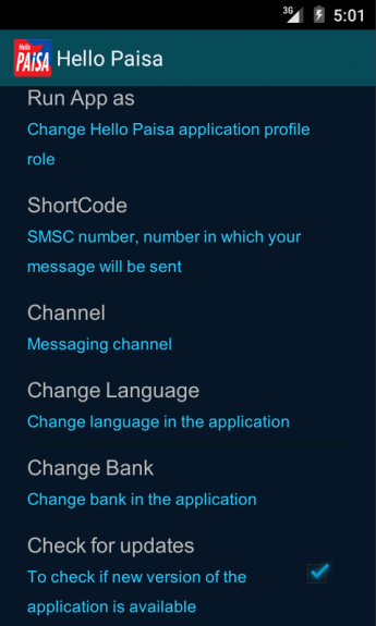Application allows users to make different requests to the Hello Paisa system. Application sends SMS to the Hello Paisa short code on the basis of operation selected by the user.