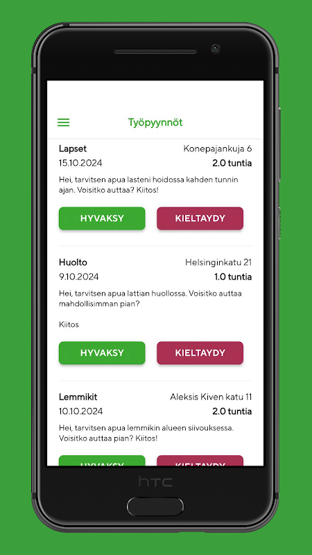 แอปพลิเคชัน Helppi ของ Suomen 4H ให้ความช่วยเหลือในชีวิตประจำวันของคุณ ง่ายกว่าในการเชื่อมโยงผู้ที่ต้องการบริการและเยาวชน 4H ที่กระตือรือร้นซึ่งคุ้นเคยกับงานของตน สามารถสั่งซื้อบริการได้ทั้งบุคคล บริษัท และชุมชน บริการ Helppi มีค่าใช้จ่าย 28 ยูโรต่อชั่วโมง (รวมภาษีมูลค่าเพิ่ม 25.5%) ราคาอาจแตกต่างกันไปตามสมาคม