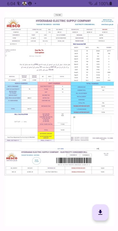 HESCO Bill Checker - แอพที่ใช้งานง่ายสำหรับการตรวจสอบค่าไฟฟ้าของคุณทางออนไลน์อย่างรวดเร็ว ด้วยการแตะเพียงไม่กี่ครั้ง เข้าถึงข้อมูลการเรียกเก็บเงินของคุณและประหยัดเวลาอันมีค่า