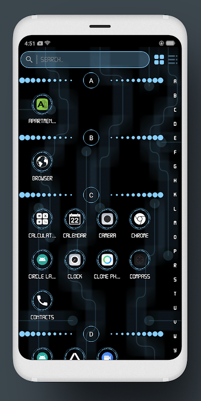 Hi-tech Launcher 2 - UI ที่ทันสมัยอย่างมีสไตล์ให้การค้นหาข้อความของแอพและดัชนีตัวอักษรซึ่งช่วยให้เข้าถึงแอปได้อย่างรวดเร็ว