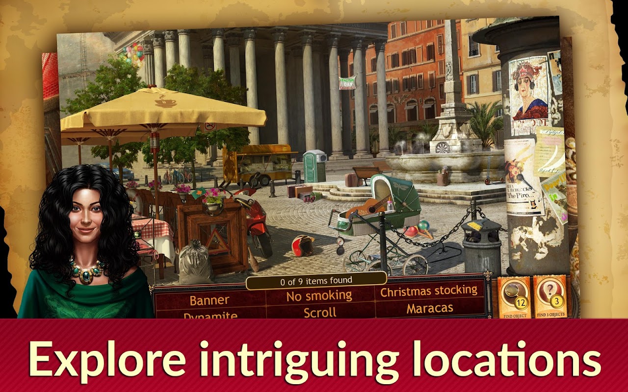 Travel through this hidden object adventure game to exciting locations such as London and Rome to seek and find lost treasures. Search though vivid, realistic pictures to uncover obscure objects and clues within the scene. Seek unusual and sometimes evasive characters throughout this story in order to solve mysterious quests and uncover secret ancient artifacts.