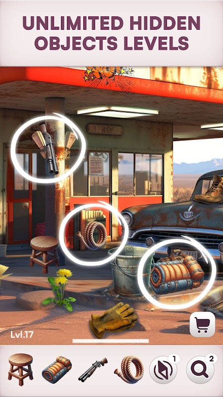 ด้วยวัตถุที่ซ่อนอยู่ที่ผสมผสานเข้ากับด่านต่างๆ อย่างกลมกลืน เตรียมตัวออกเดินทางในแบบที่ไม่มีใครเหมือน สิ่งที่คุณต้องทำคือก้าวเข้าไปในสถานที่ต่างๆ ที่มีฉากที่น่าดึงดูด และค้นหาวัตถุที่ซ่อนอยู่ในด่านต่างๆ ใช้คำใบ้หากคุณพบปัญหาในการผ่านด่าน นอกจากนี้ คุณยังสามารถซูมเข้าและซูมออกเพื่อค้นหาวัตถุที่ซ่อนอยู่ซึ่งยากต่อการค้นหา สำรวจฉากที่น่าดึงดูดใจซึ่งทุกรายละเอียดมีความสำคัญ และทักษะการสืบสวนของคุณจะนำทางคุณตลอดการเดินทางที่น่าตื่นเต้นในแต่ละด่าน