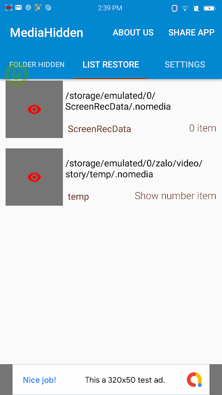 หากต้องการใช้ต้องเลือกแสดงหนึ่งโฟลเดอร์ หากผลลัพธ์สำเร็จสื่อที่ซ่อนอยู่ทั้งหมดจะแสดงในแอพคลังภาพ