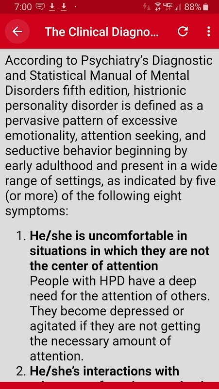 Histrionic Explained เป็นแอพเกี่ยวกับความผิดปกติทางบุคลิกภาพ (histrionic) หรือ HPD