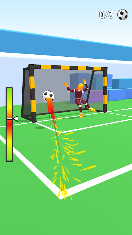 Aim for the goal and make the keeper cry! Shoot as hard as possible and score as many goals as possible!