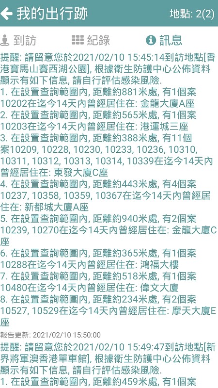 V2.1.8版本發佈, 增加新功能, 可以記錄到訪過地點相片時間, 如果有相關疫情, 系統會提醒, 用戶全權管理資料. 另外修正之前版本使用不同機型的問題.
