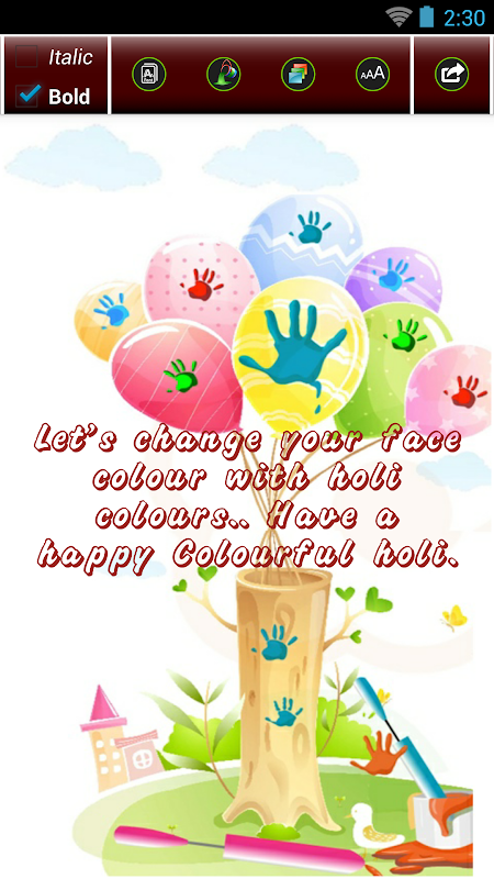 - Now, design your holi greeting message with changing fonts, colors, most attractive holi background papers.