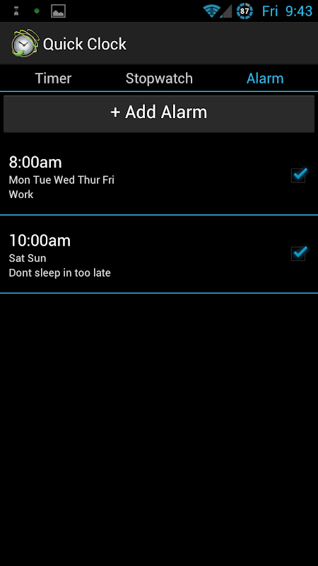 Quick Clock is what the Android Clock should have been. It adds in the much needed Timer and StopWatch functionality along with plenty of options to go with them.