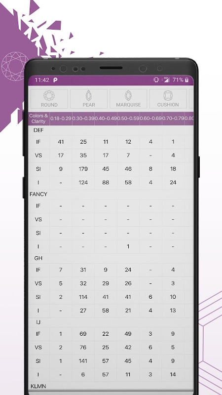 แอพของเรามีเพชรหลากหลายขนาดรวมถึงสินค้ามาใหม่สีขาวและเพชรแฟนซี คุณสามารถแชร์รายละเอียดเพชรกับลูกค้าของคุณได้เช่นกัน