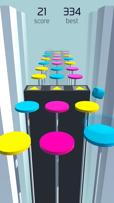 Bounce on the same color to score points.