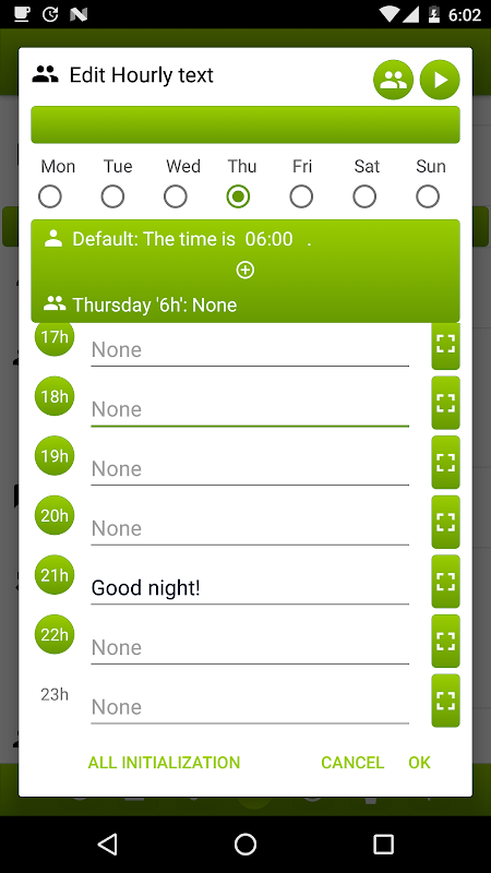 - You can make different phrases by hour / day.