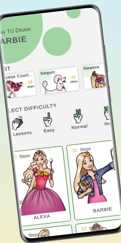 บาร์บี้เป็นการ์ตูนที่ได้รับความนิยมไปทั่วโลกด้วยตัวละครที่เป็นเอกลักษณ์ หากคุณไม่รู้วิธีวาดตัวละครหลัก นี่เป็นแอปพลิเคชั่นฝึกอบรมสำหรับคุณ! ที่นี่คุณจะได้พบกับบทเรียนการวาดภาพทีละขั้นตอนมากมาย แอพฝึกหัด HOW to DRAW BARBIE STEP BY STEP จะช่วยให้คุณวาดตัวละครโปรดของคุณได้ ที่นี่คุณจะได้พบกับบทเรียนการวาดภาพทีละขั้นตอนมากมาย