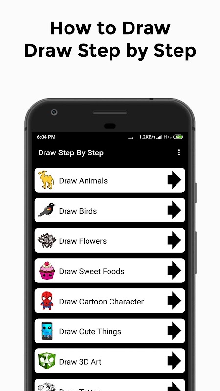 How to Draw - Draw Step by Step App collections of Categories are below and provide all this Topic Like,
