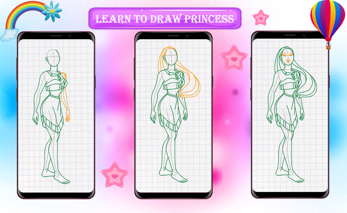 How to Draw Princess Characters is perfect app for those who want to be an artist and love drawing Princess Characters . This App teaches you how to Draw Princess Characters in simple steps and improve your confidence of drawing and coloring.