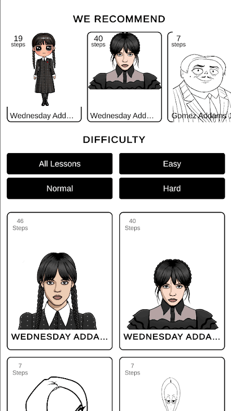 แอปพลิเคชั่น How to draw Wednesday Addams 2022 ในชีวิตจริงทีละขั้นตอนมีการควบคุมที่ง่ายและชัดเจน คุณสามารถจัดการได้โดยไม่มีปัญหา