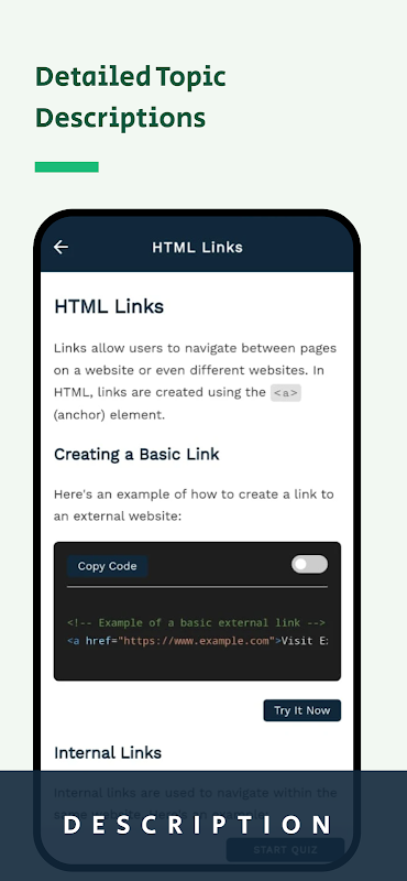 มาเป็นผู้เชี่ยวชาญด้านการพัฒนาเว็บไซต์ด้วย HTML Mastery! ไม่ว่าคุณจะเป็นมือใหม่หรือกำลังมองหาที่จะพัฒนาทักษะ HTML ของคุณ แอปนี้มีบทช่วยสอนที่ครอบคลุม บทเรียนเชิงโต้ตอบ และตัวอย่างที่ใช้งานได้จริง เพื่อช่วยให้คุณเรียนรู้ HTML ได้อย่างรวดเร็วและมีประสิทธิภาพ