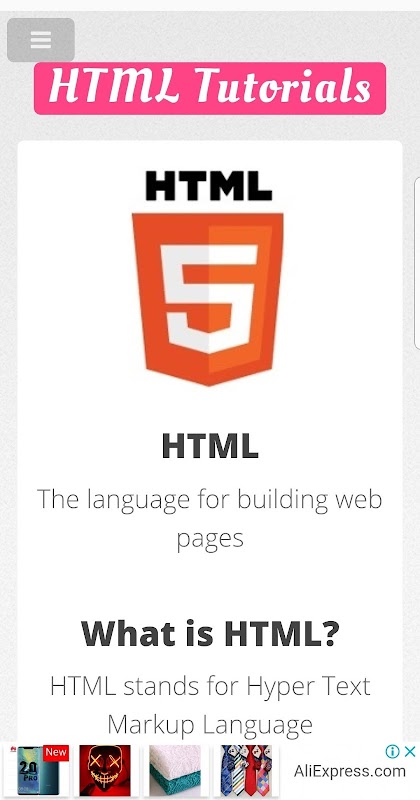 This app contains A to Z HTML Tutorials.That covers almost every aspect of the HTML.