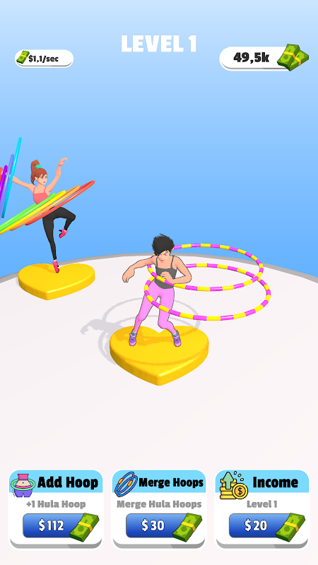 หากต้องการรับเงินมากขึ้น คุณสามารถแตะที่หน้าจอเพื่อเพิ่มความเร็วในการหมุนของฮูลาฮูปทั้งหมด