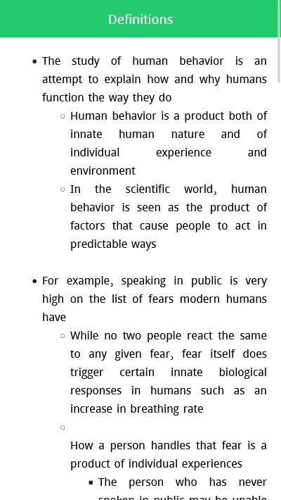 เรียนรู้พฤติกรรมมนุษย์เป็นสิ่งจำเป็นสำหรับผู้เริ่มต้น มันจะให้บททั่วไปและมีประโยชน์มากที่สุดแก่คุณ แอพออฟไลน์จิตวิทยาพฤติกรรมมนุษย์นี้จะให้ตัวอย่างและคำอธิบายแก่คุณ ดังนั้นตอนนี้คุณสามารถพกหนังสือพฤติกรรมมนุษย์ขั้นพื้นฐานแบบออฟไลน์และเรียนรู้ได้ทุกที่ทุกเวลา