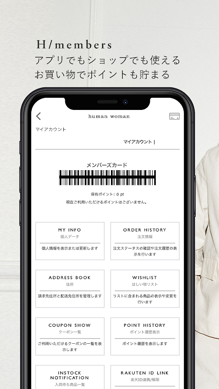 คุณสามารถใช้มันโดยการสะสมคะแนนในร้านค้าและเว็บ เป็นแอพสำหรับช็อปปิ้งที่คุณสามารถตรวจสอบเทรนด์ล่าสุดและข้อมูลใหม่และการลดราคาพร้อมกันและซื้อสไตล์ที่แนะนำเป็นต้น
