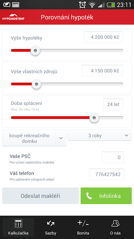 V aplikaci HYPOASISTENT najdete hypoteční kalkulačku, úrokové sazby, porovnání hypoték i ověření Vaší bonity. Všechny výpočty jsou orientační, pro získání přesných výpočtů nás kontaktujte a zdarma připravíme přesnou nabídku. Pokud Vás čeká konec fixace či otázka refinancování hypotéky, jistě oceníte aktuální úrokové sazby pro dané fixace, sledovat můžete také vývoj mezibankovní sazby PRIBOR u Vaší hypotéky s pohyblivou sazbou.