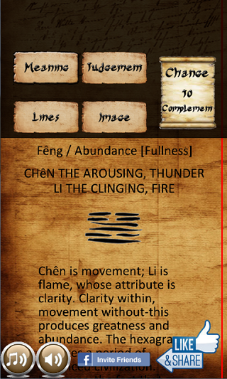 With this app you can share with your friends via facebook the hexagram given by the I Ching