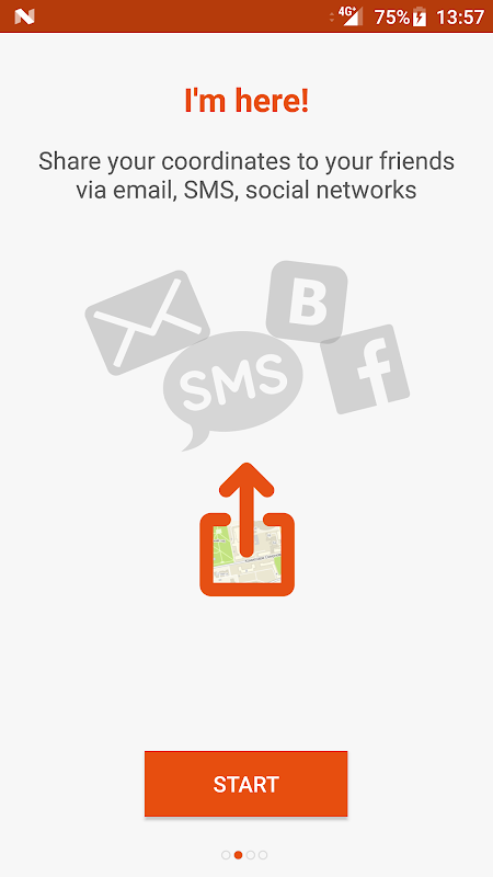 - Allows you to share your location by e-mail, SMS, social networks.