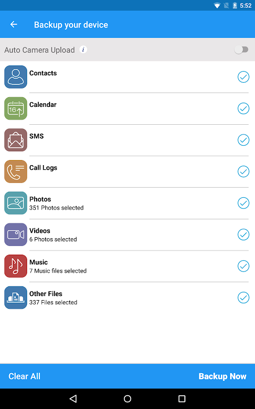 ทั้งหมดของเราใหม่ Android app ทำให้มันเป็นไปได้ในการสำรองและกู้คืนข้อมูลมือถือที่มี 'แตะเพียงครั้งเดียว' คุณสามารถสำรองรายชื่อในขณะนี้, ภาพถ่าย, วิดีโอ, ไฟล์การ์ด SD, บันทึกการโทร, ปฏิทินและข้อความ
