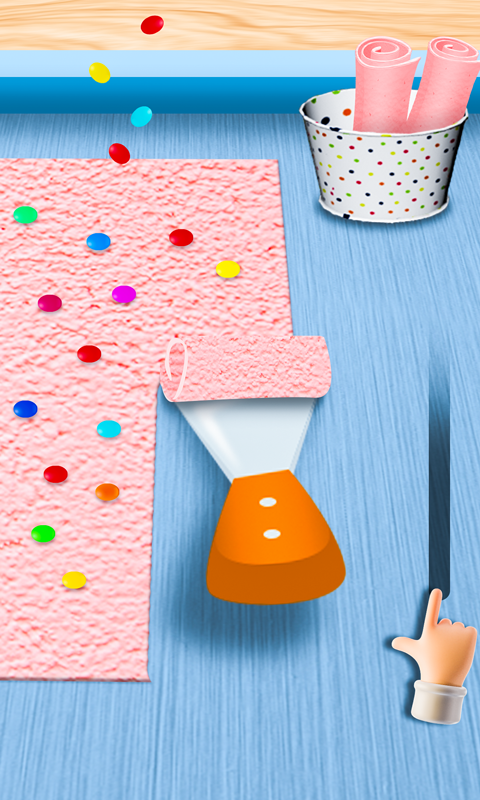 หลังจากทำน้ำแข็งโรลแล้ว คุณสามารถเพิ่มโรยหน้า คุกกี้ น้ำเชื่อม ลูกอม ช็อคโกแลตสตรอเบอร์รี่ ซึ่งเป็นครีมที่สมบูรณ์แบบสำหรับเกมไอศกรีมเกมนี้
