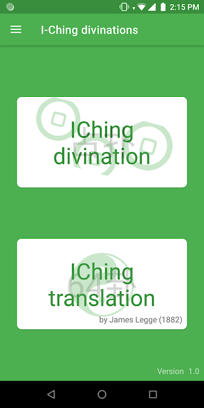 แอพนี้ให้การตีความภาษาอังกฤษของการหาร I-Ching (https://en.wikipedia.org/wiki/I_Ching)