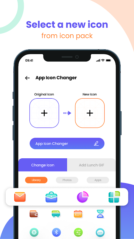 นอกจากนี้ ผู้ใช้ยังสามารถทำให้หน้าจอหลักดูน่าสนใจและสวยงามยิ่งขึ้นด้วยแอพปรับแต่งแอพที่ไม่มีใครเทียบได้ ตอนนี้คุณสามารถแทนที่ไอคอนที่น่าเบื่อและเป็นอิสระด้วยไอคอนที่ส่องแสงและทำให้น่าสนใจและสวยงามยิ่งขึ้น ผู้ใช้สามารถเปลี่ยนสไตล์แอพได้และเปลี่ยนทั้งหน้าจอของอุปกรณ์สมาร์ทโฟน แอพออกแบบไอคอนให้ผู้ใช้เพิ่มหน้าปกแอพฟรีพร้อมกับวิดเจ็ตสีเพิ่มเติม เครื่องมือสร้างไอคอนแอปประกอบด้วยตัวแก้ไขหน้าจอหลัก สไตล์ต่างๆ ฉาก นีออน ฯลฯ แอปตัวเปลี่ยนธีมสามารถปรับขนาดไอคอน เปลี่ยนรูปแบบข้อความ เสียงข้อความ ฯลฯ คุณสามารถสร้างไอคอนที่กำหนดเองได้ตามต้องการจากแกลเลอรีด้วยแอปเปลี่ยนโทรศัพท์