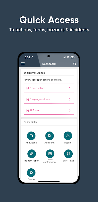 - เข้าถึงง่าย: เข้าถึงโมดูล Ideagen EHS Core ของคุณได้อย่างง่ายดาย ณ เวลาและสถานที่ที่เหมาะสมกับทีมของคุณ แม้ในขณะที่ทำงานแบบออฟไลน์ ข้อมูลจะถูกเก็บไว้ในอุปกรณ์มือถือและซิงค์เมื่อสามารถเข้าถึงเครือข่ายได้