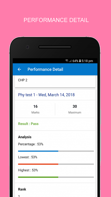 * Get detailed reports on student’s performance and graphical representation of results.