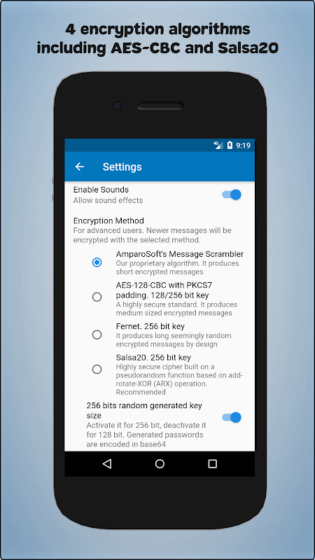 - 4 อัลกอริธึมการเข้ารหัสรวมถึงมาตรฐานความปลอดภัยสูง AES CBC และ Salsa20
