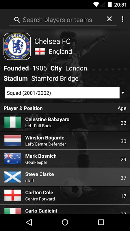 The app is updated daily, giving the latest statistics, including, goals scored, appearances, transfer fees, height, weight, and age. Football fans could not ask for a larger wealth of information. If there is any data not complete then we can update this from your user feedback by a simple in app suggestion screen.