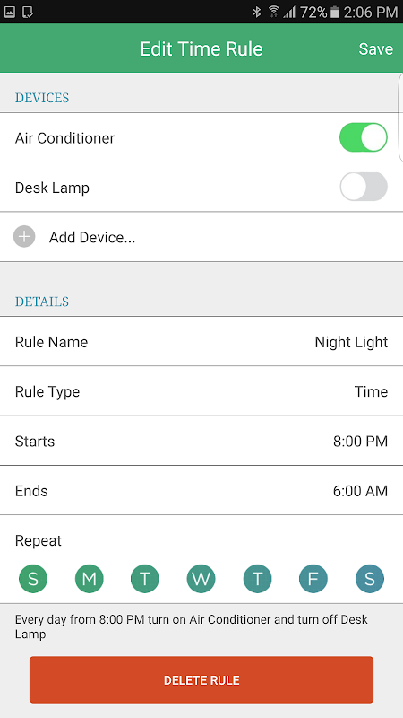 • Create Rules (schedules) to turn iHome SmartPlugs on or off automatically