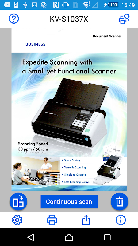 ด้วยแอปพลิเคชันนี้ การสแกนสามารถส่งได้โดยตรงจาก Panasonic Document Scanner ไปยังสมาร์ทโฟนหรือแท็บเล็ตของคุณ