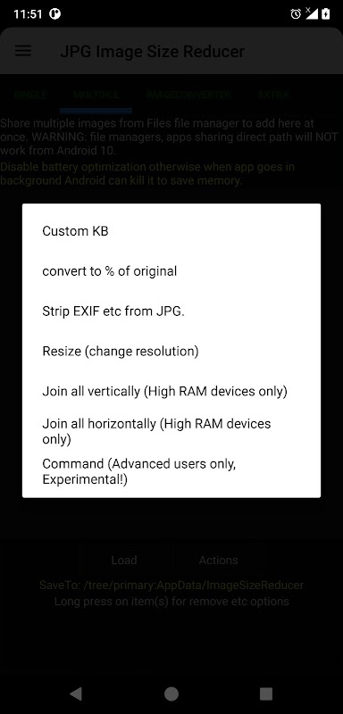 - ใช้คุณสมบัติบันทึกลงในแกลเลอรีเพื่อคัดลอกรูปภาพไปยังอัลบั้มหรือโฟลเดอร์ Pictures/ImageSizeReducer ด้วยตนเอง