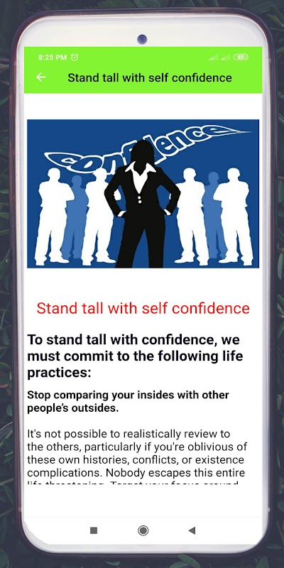 ความมั่นใจจะดีขึ้นในงานของคุณและในชีวิตที่ผ่านมาของบุคคล แอพนี้เป็นวิธีสร้างแนวความเชื่อมั่นในตนเอง
