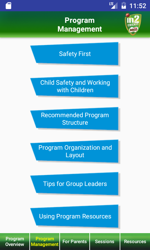 The MILO in2CRICKET app provides you with all the necessary resources and information for the MILO in2CRICKET program to help ensure cricket is fun, safe, challenging and educational. The app also includes recommended session plans, inclusive activities and games complemented with short video clips. All activities have been designed to be delivered by accredited coordinators with the help of volunteers and parents. As a coordinator or parent helper you also have the ability to create your own sessions within the MILO in2CRICKET framework. All activities and games are linked to skill development outcomes based on fundamental movement skills and further promoting the importance of living healthy and active lives.