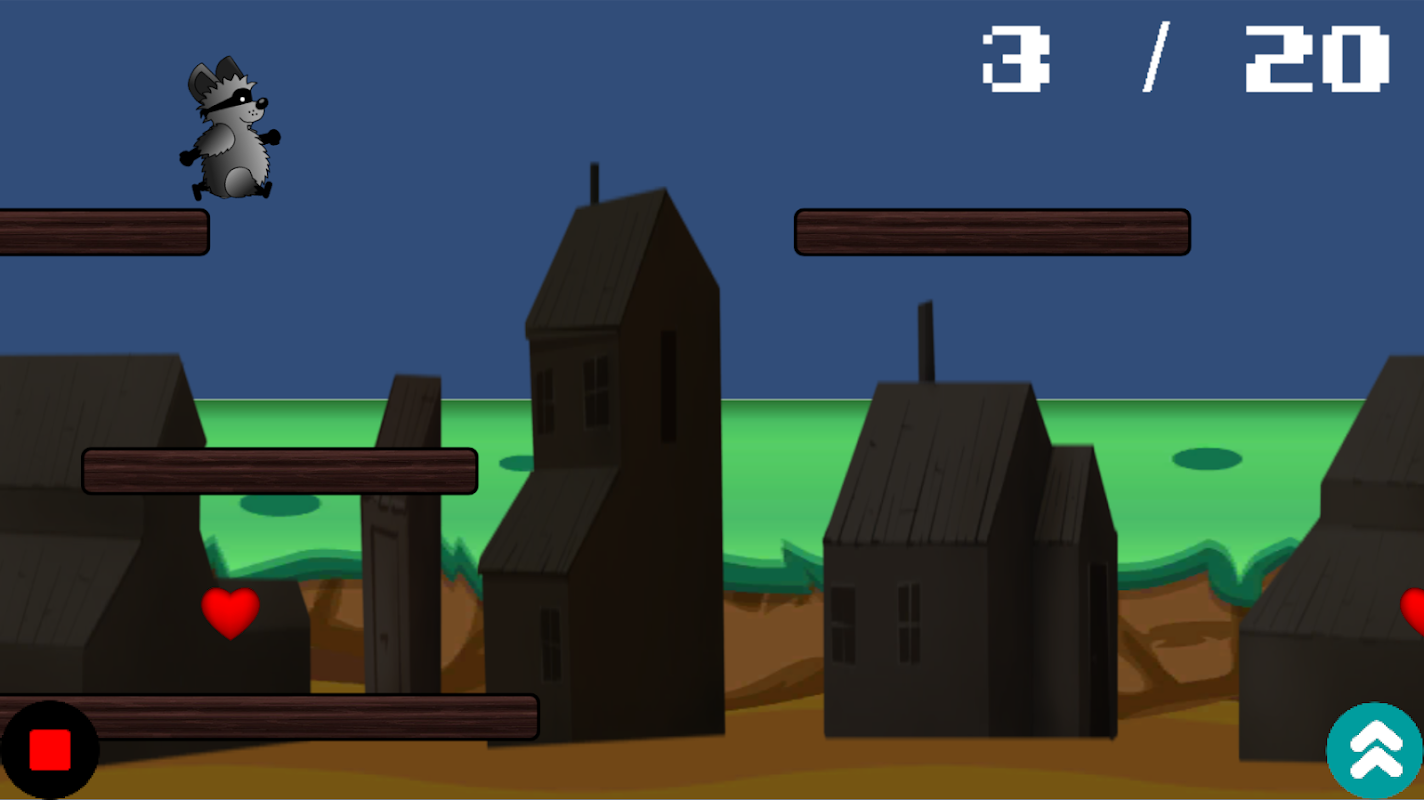 Endless platform racing game where you have to get 20 hearts to pass the level.