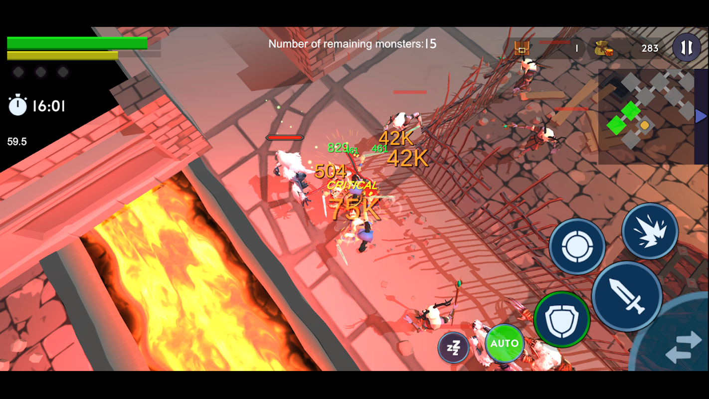- ยิ่งระดับดันเจี้ยนสูงขึ้น โอกาสที่จะได้ไอเท็มคุณภาพดีก็จะสูงขึ้น - เมื่อเคลียร์ดันเจี้ยนแล้วจะมีโหมดต่อสู้อัตโนมัติ และคุณสามารถรวบรวมไอเท็มได้โดยปล่อยให้ดันเจี้ยนอยู่เฉยๆ จนกว่าคุณจะตาย