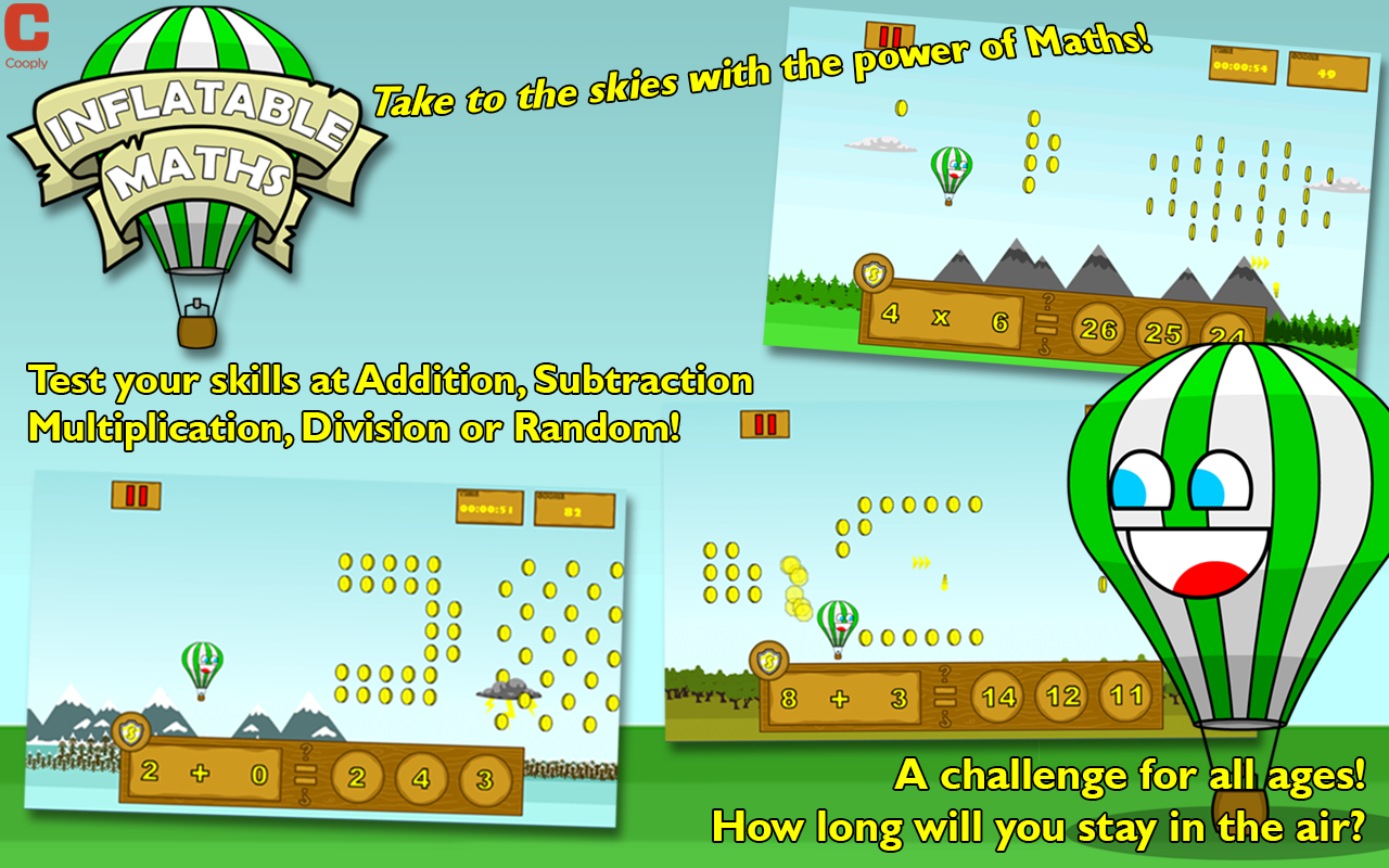 ทะยานไปบนท้องฟ้าด้วยบอลลูนที่ขับเคลื่อนด้วยความรู้! เลือกระหว่างการบวก ลบ คูณ หาร หรือทั้งสี่วิธี แล้วดูว่าคุณจะสามารถทำให้บอลลูนลอยน้ำได้นานแค่ไหน เก็บเหรียญ หลีกเลี่ยงอุปสรรค และพิชิตท้องฟ้าด้วยพลังอันน่าทึ่งของคณิตศาสตร์!